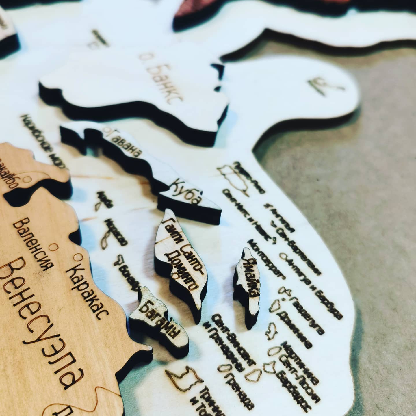 Карта мира нашего производства, изготовлена из березовой фанеры 6 мм. Карта прошла 2-хстороннюю стадию шлифовки, за счет чего стала гладкой и приятной на ощупь Надежно упакована и имеет максимальную детализацию. Континенты стран разрезаны на сегменты, получается что то вроде пазла.